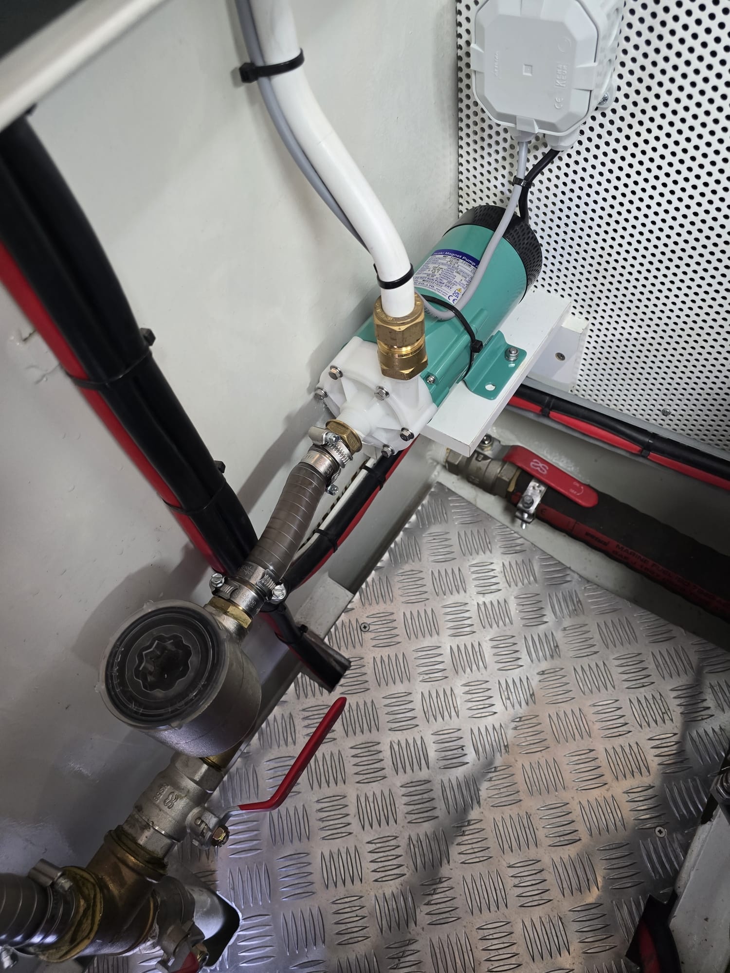 Webasto seawater pumps are engineered for reliable operation in BlueCool marine air conditioning systems. They ensure a consistent seawater flow to cool the refrigerant inside the condenser. Webasto recommends one dedicated pump per chiller unit to guarantee optimal flow rates and system safety.