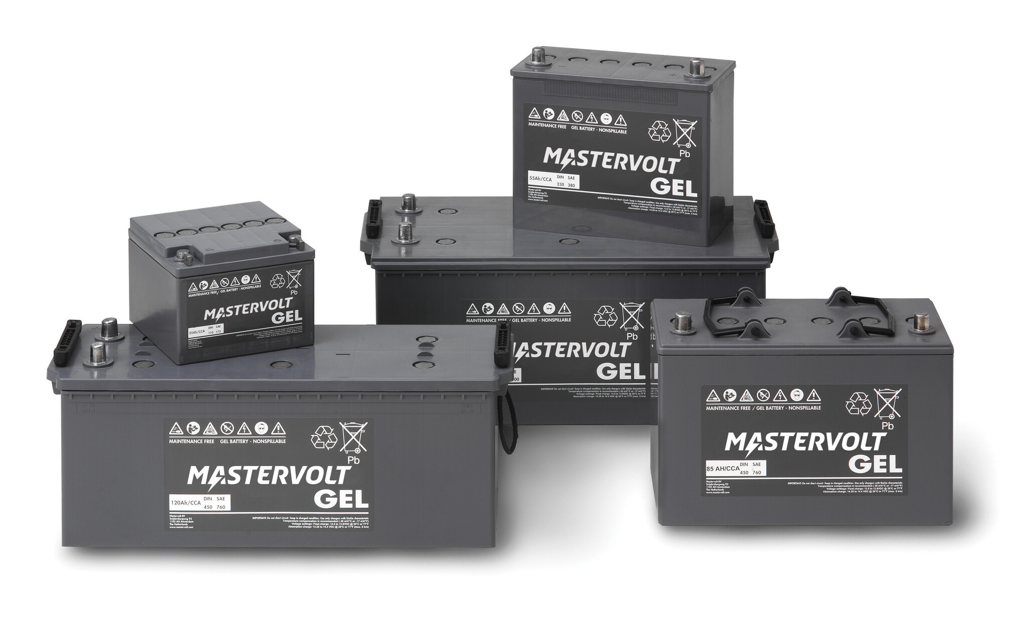 Mastervolt Gel batteries are designed for long life and deep discharge in demanding applications. These sealed, maintenance-free batteries perform exceptionally well under cyclic loads.
