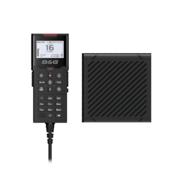 B&G H100 wired handset and speaker for V100/V100-B VHF radios. Up to 4 wired handsets can be added to one system and 4 wired Speakers.