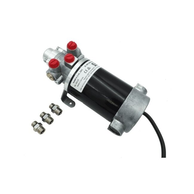 PUMP-2: 12V DC: Reversible hydraulic gear pump. 0.8L (49 cu.in) / min. For cylinder displacement of 80 cc - 250 cc (4.9 - 15.2 cu.in). O-Ring Boss (ORB) connections. Includes 3 x ORB-5 to 9/16 UNF fittings. SteadySteer compatible. (NAC-2 / AC12 required).